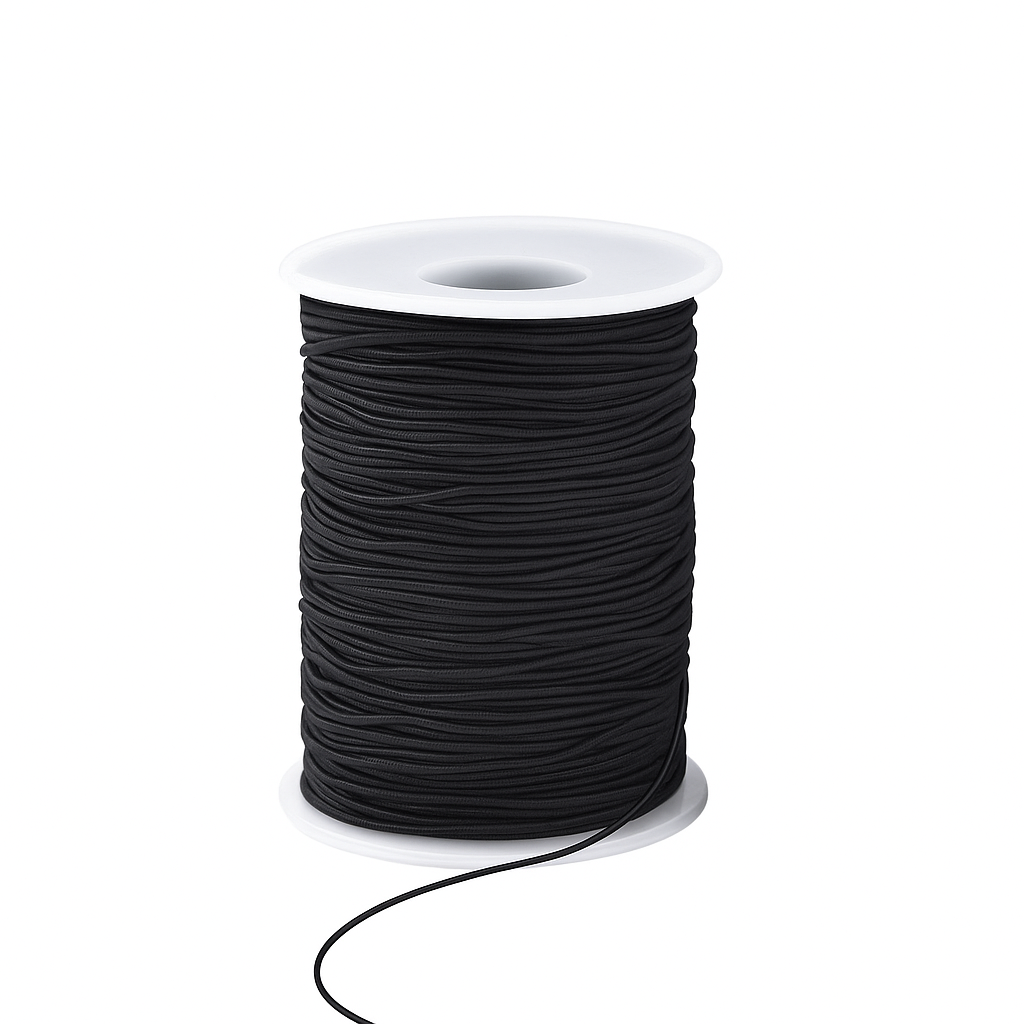 Domov / POMOŽNI MATERIAL / ELASTIČNA VRV Ø8 MM 600982 ČRNA 100% POLIESTER – 50M